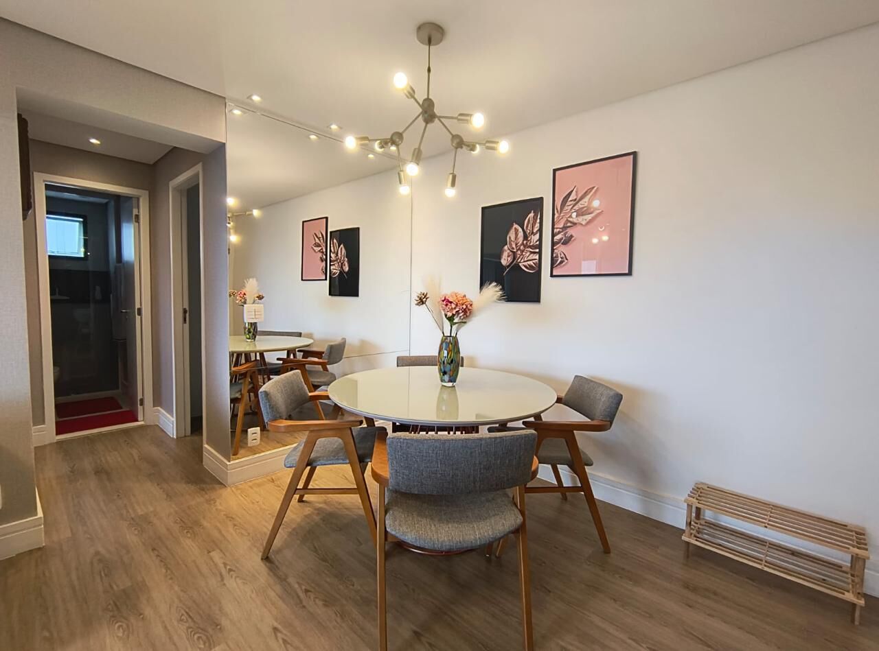 2 Dormitórios, sendo 1 suíte2 Banheiros1 VagaGaragem Coberta1 Sala de TV1 Cozinha1 Sala de jantar